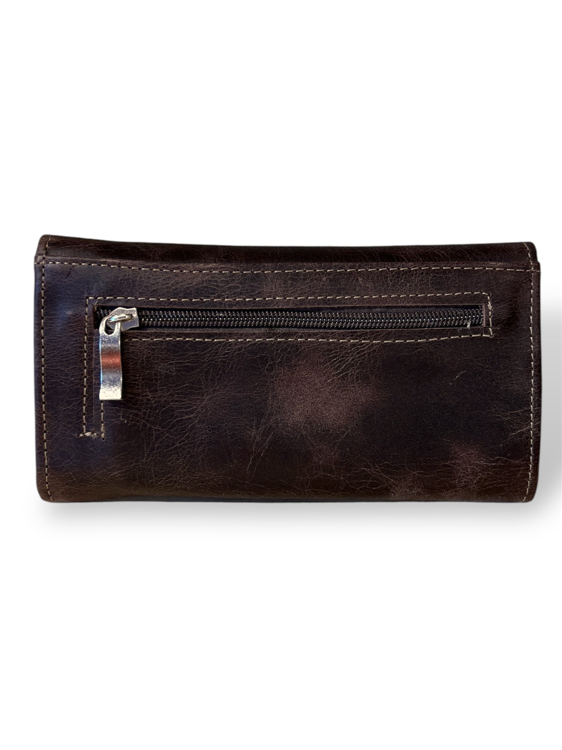 Billetera para dama de cuero marrón salvaje