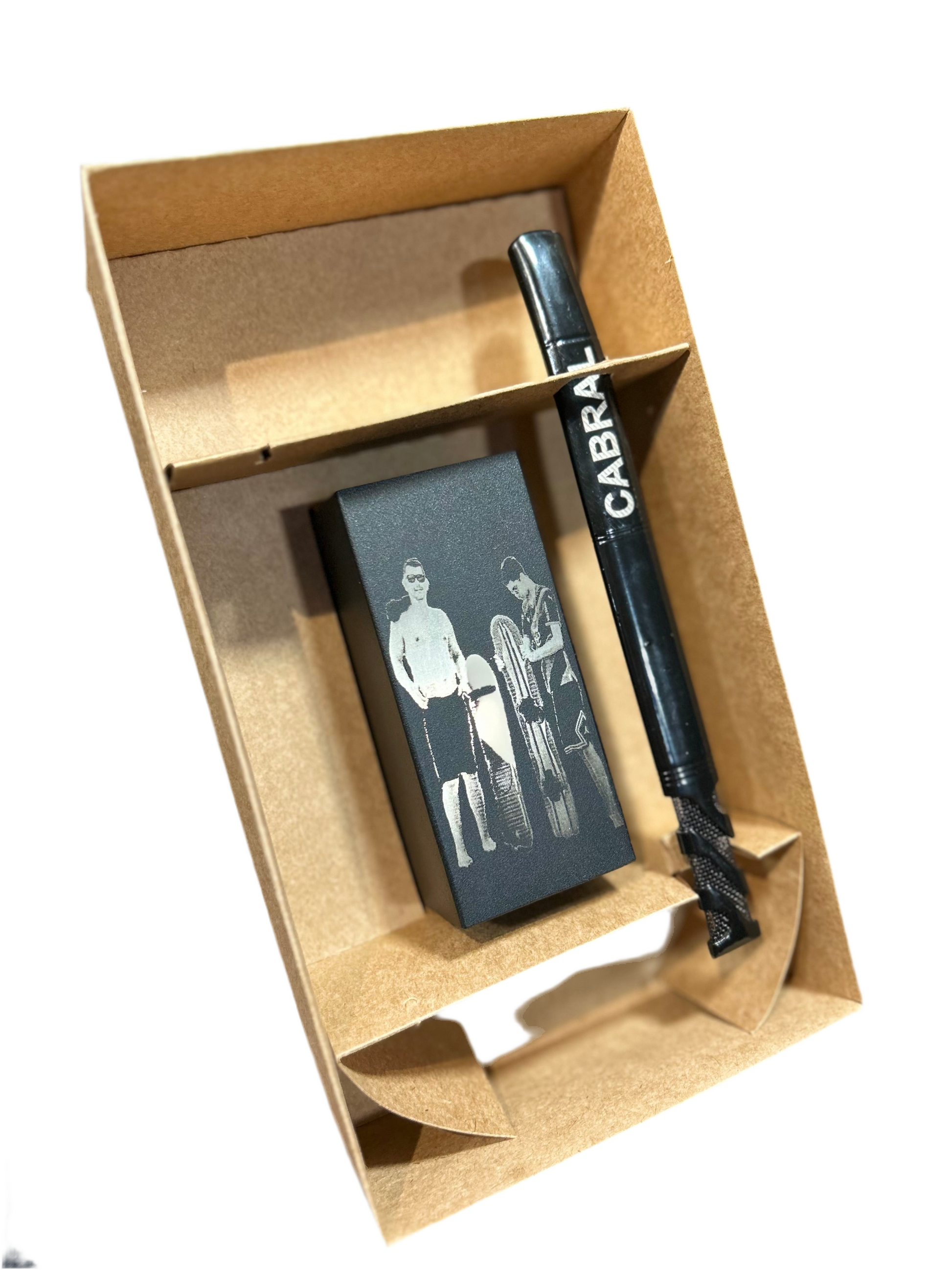 Guampa de acero inoxidable negro con bombilla.