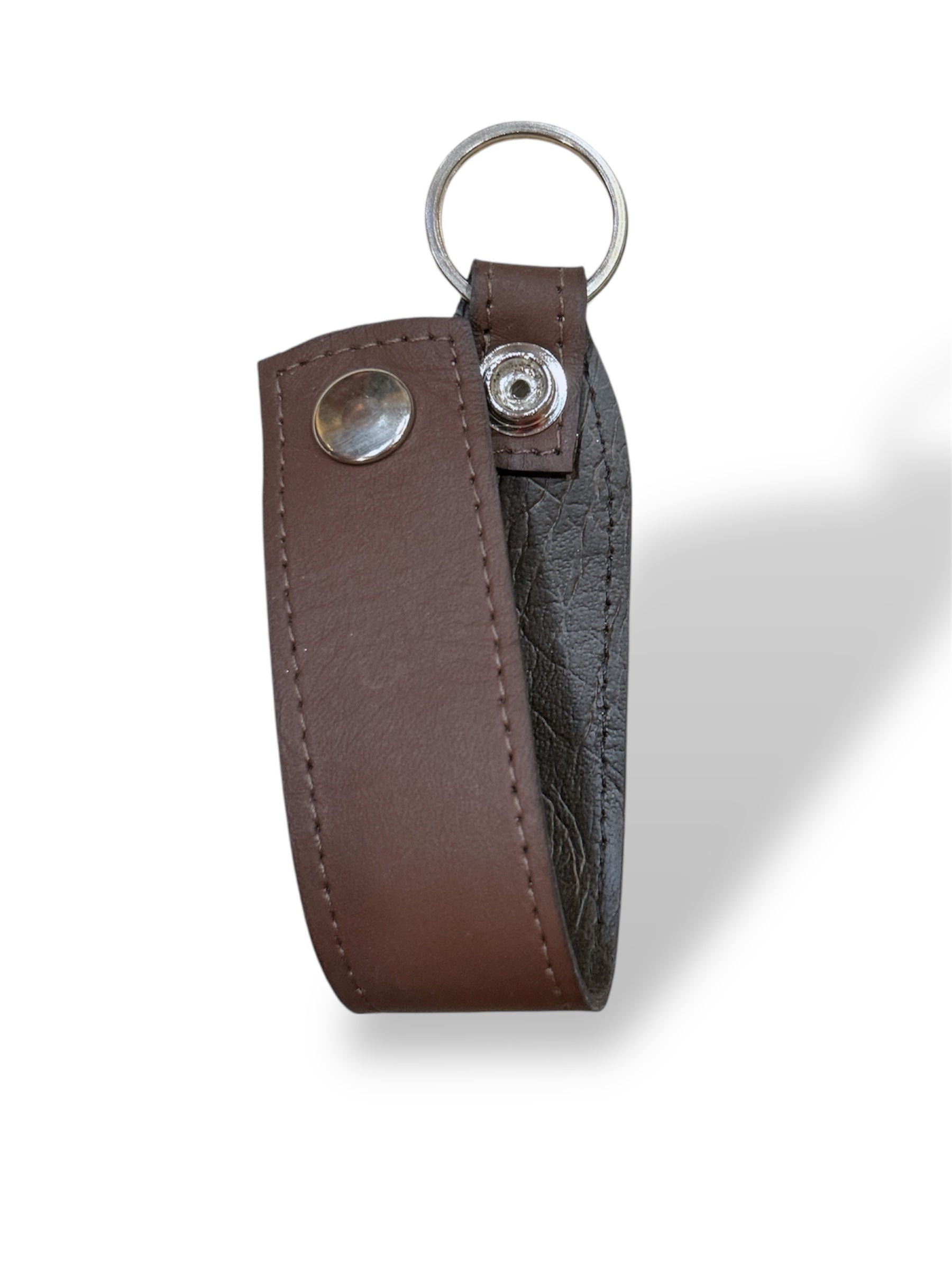 Llavero de cuero marrón con argolla